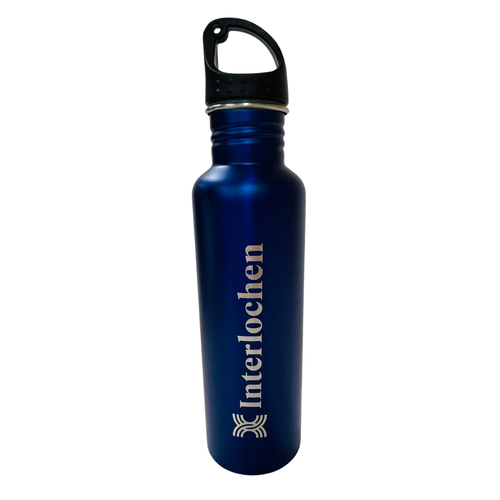 Sip in style with this sleek navy blue stainless steel water bottle, featuring a striking silver Interlochen logo. Durable and lightweight, it’s perfect for everyday use—just grab your carabiner and hook it to your bag by the handle for easy, on-the-go hydration.