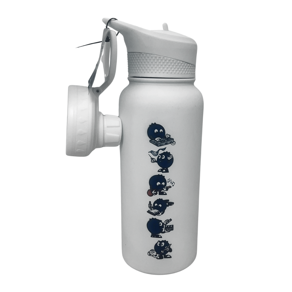 Stay refreshed with this 34 oz insulated water bottle in a sleek white finish, featuring 11 blueberry designs inspired by our beloved Interlochen mascot, each celebrating a different discipline of study. It comes with two interchangeable caps—one with a convenient spout for easy sipping and one wide-mouth chug cap for quick hydration. Perfect for wherever your day takes you.